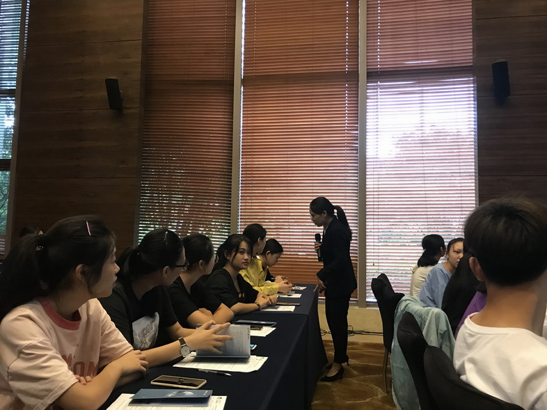 首先由无锡太悦度假酒店管理有限公司顾焱达经理向大家介绍了无锡太悦度假酒店的发展历程、企业文化以及入职条件等;接着由各部门经理对本部门情况进行简单介绍及挑选合适人选入职。入职仪式中各酒店部门经理与学生热情洋溢的互动,使学生对酒店和岗位都有了新的认识,对今后的工作充满了期待和激情!