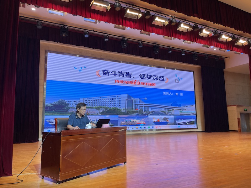 讲座围绕“蓝色守望,经略海洋强国信念”“向海图强,民族复兴历史重任”“深耕海洋,国之重器创新发展”“逐梦深蓝,纵横船海铸造辉煌”四大板块展开。谢教授以郑和下西洋为引,回顾中华民族的海洋记忆,深刻剖析了海洋资源、能源安全与地缘政治现状,指出建设海洋强国是实现民族复兴的必由之路。