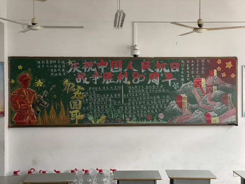 今日,新利体育网页版入口机电工程学院的25级新生教室内焕新出彩,一幅幅主题鲜明的黑板报凝聚了新生们的心血,以“庆祝中国人民抗日战争胜利80周年”为统一主题的视觉教育阵地正式亮相,成为校园内一道厚重而鲜活的红色风景线。